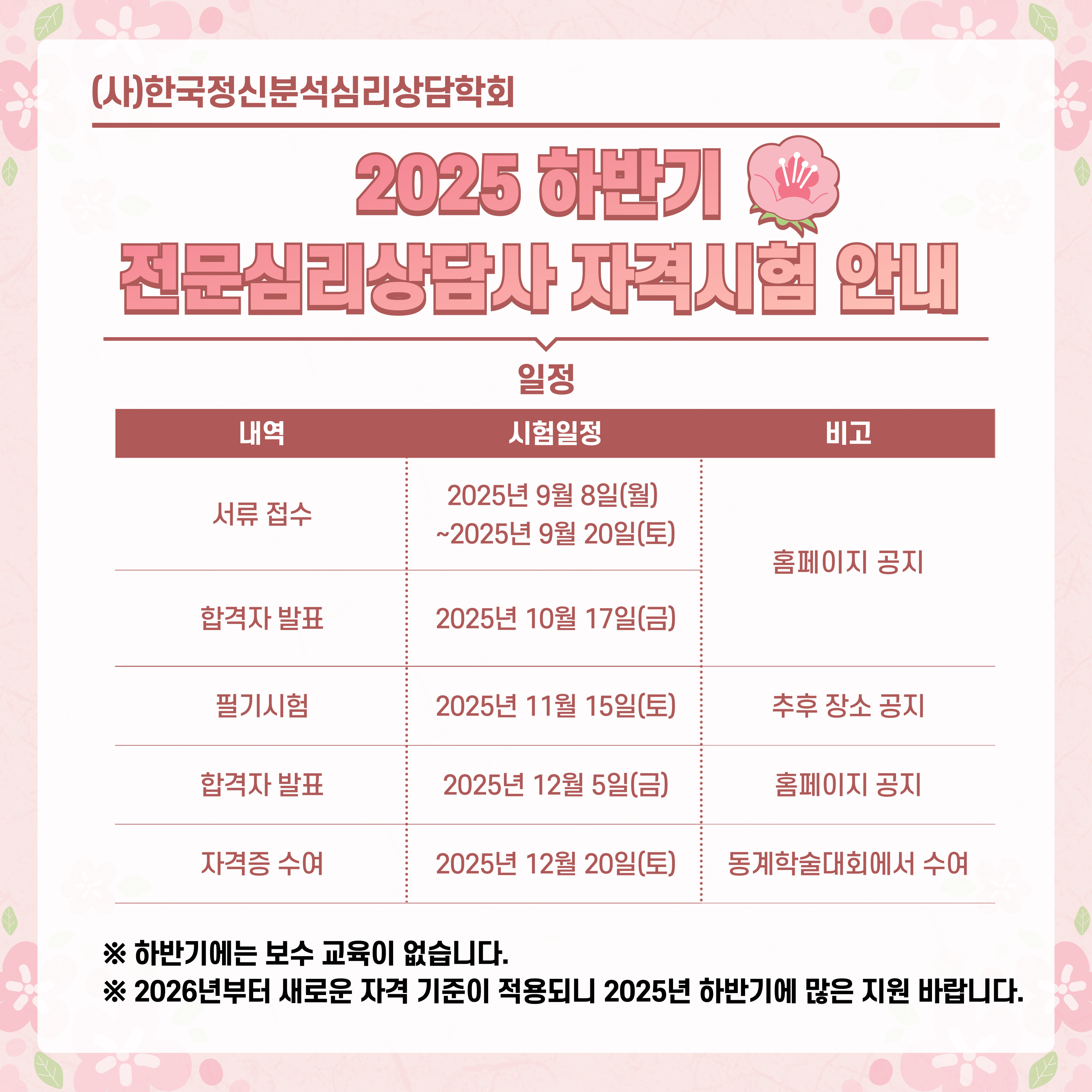 2025년 하반기 자격수련자료 심사 안내(필독!!)