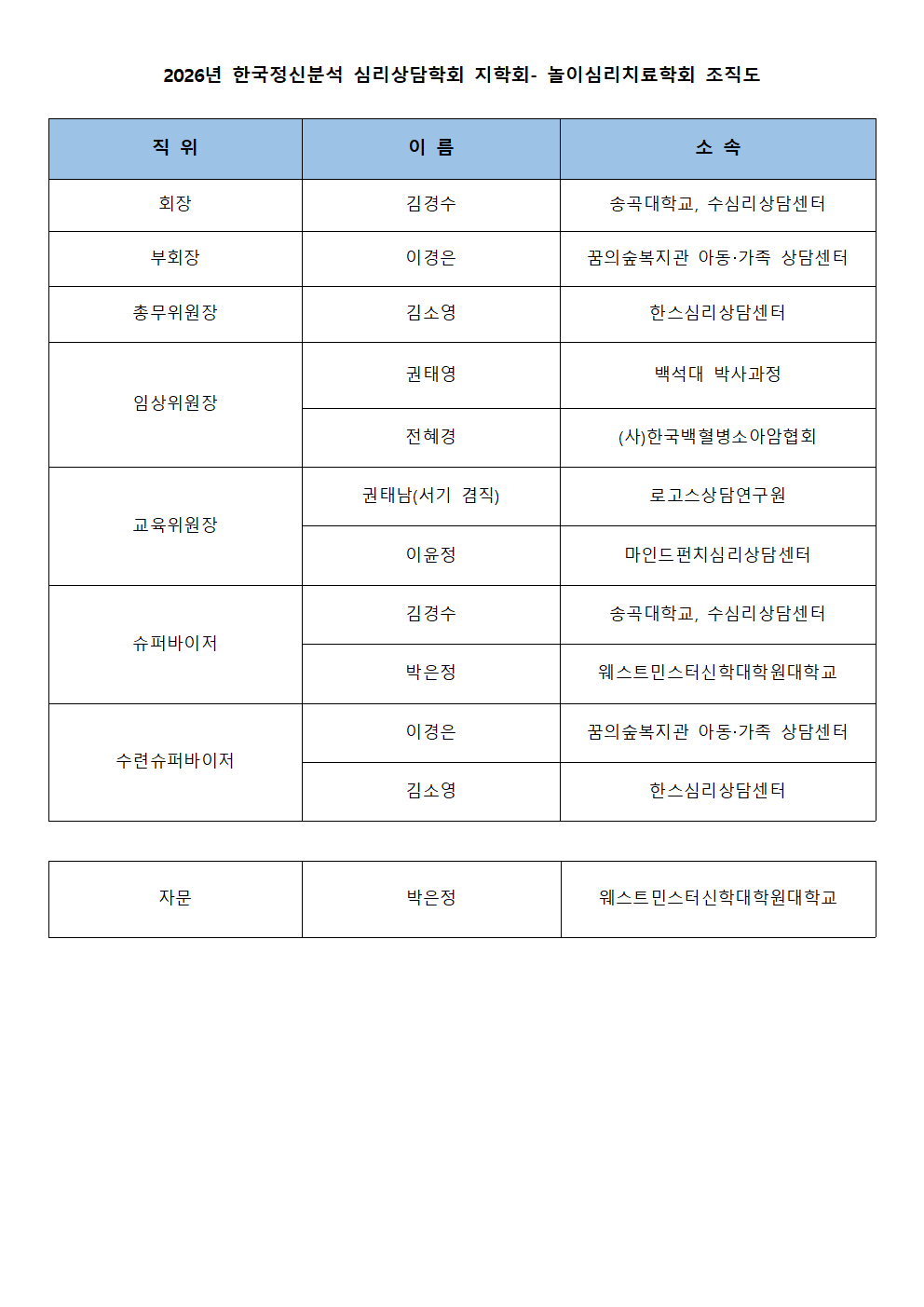 놀이심리치료학회 : 조직 및 구성