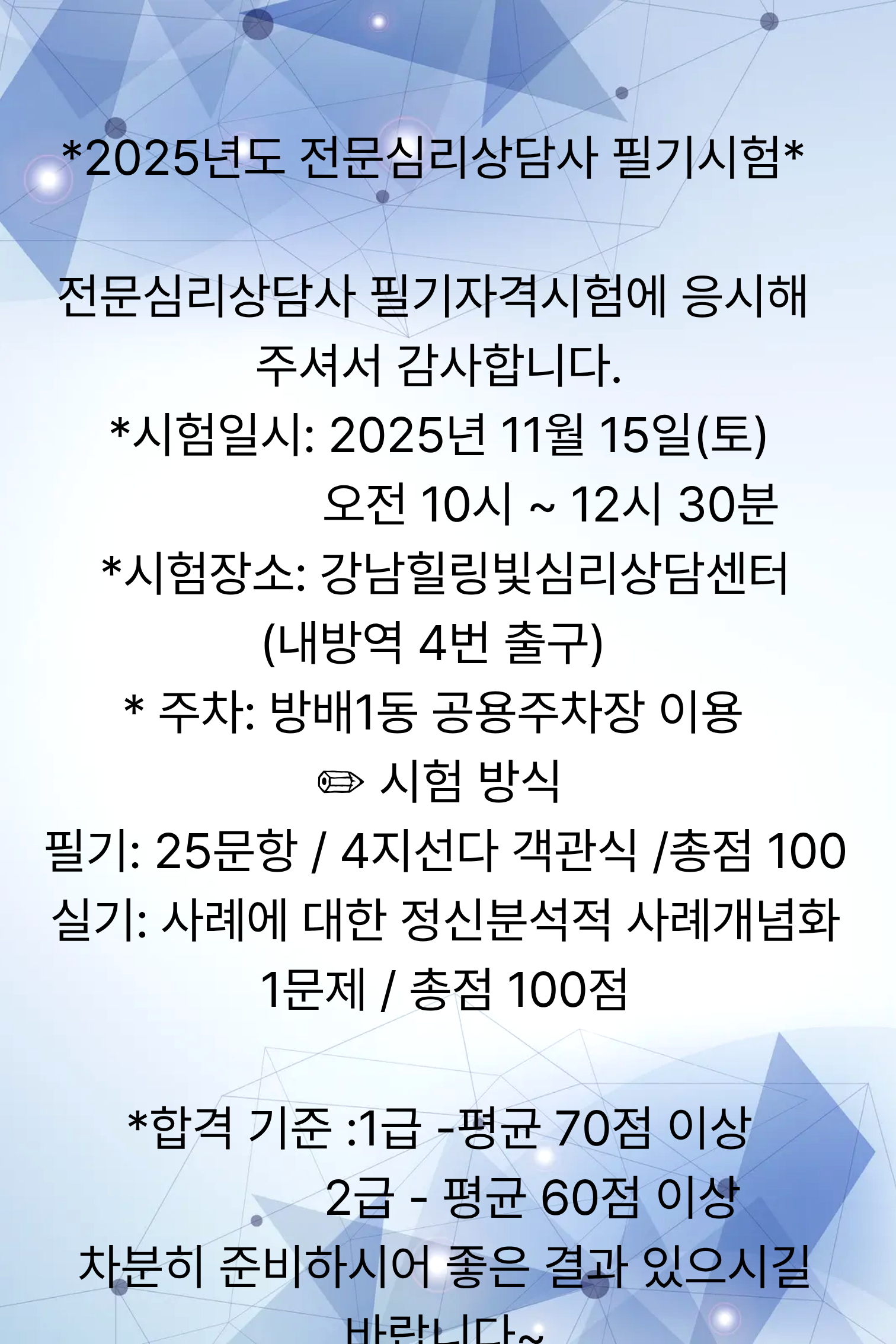 2025년 하반기 전문심리상담사 필기시험 안내